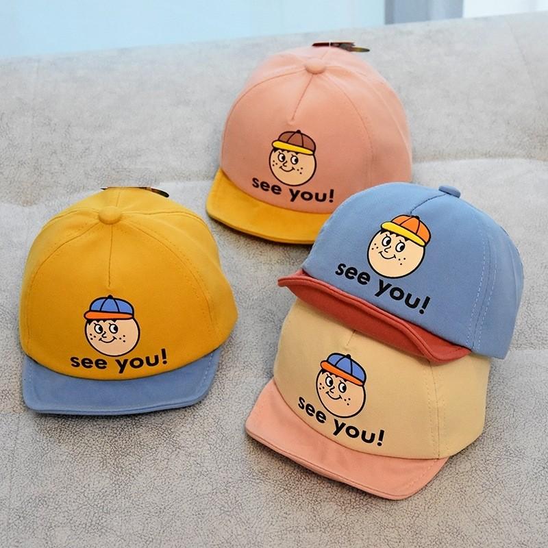 キャップ ベビー 帽子 子供用 赤ちゃん 女の子 男の子 イラスト 野球帽 短いつば おしゃれ 可愛い お散歩 日除け イエロー プラスナオ Paypayモール店 通販 Paypayモール